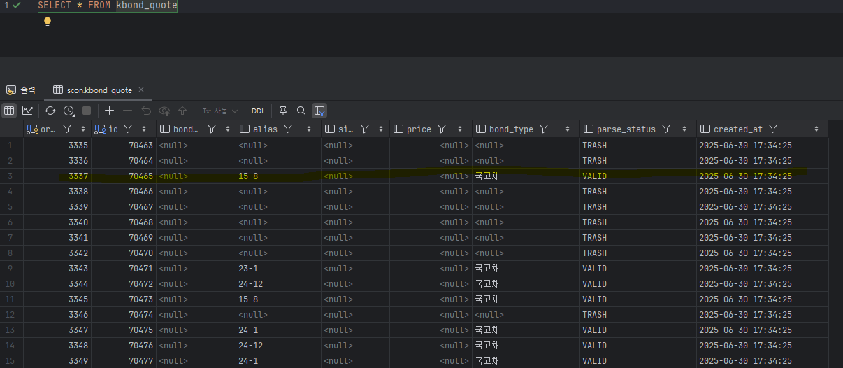 - KBOND_QUOTE: 실제 분석 결과 저장용 (별도 테이블)