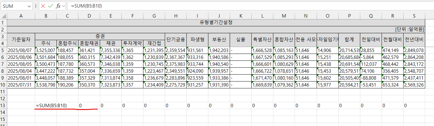 - 끝. =SUM() 정상 작동.