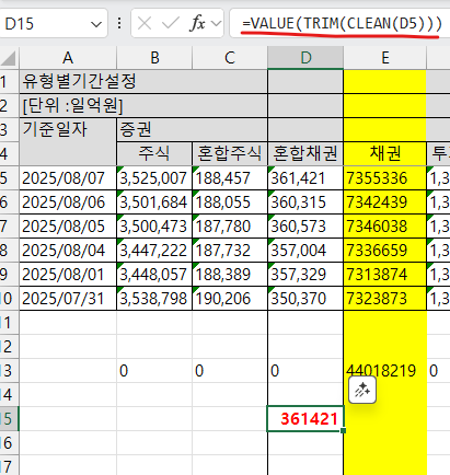 금융투자협회 자료는 숫자에 천 단위 구분 쉼표가 포함된 상태로,
