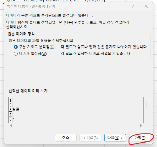 [엑셀 1] 함수 안먹힐 때, 쉼표 포함 숫자 1초 변환법(텍스트 나누기 활용)