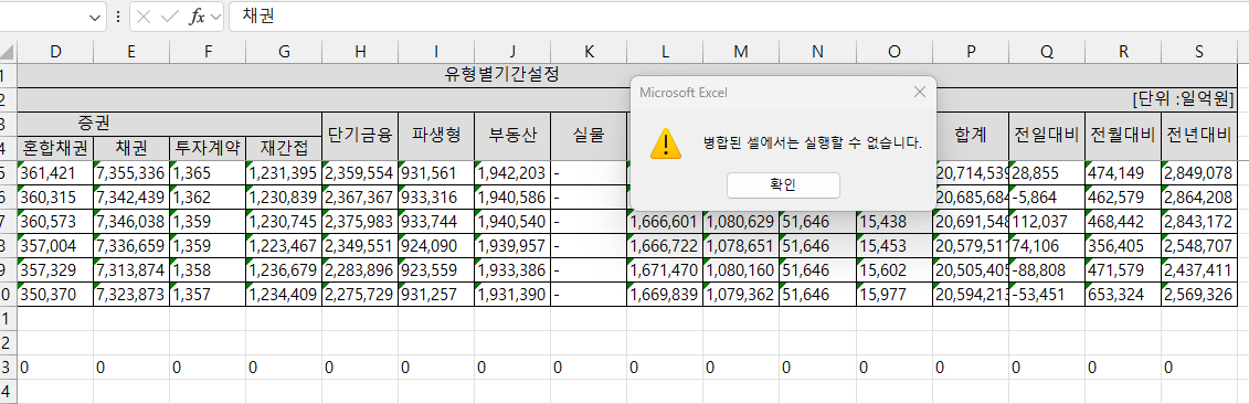 병합 셀은 반드시 해제