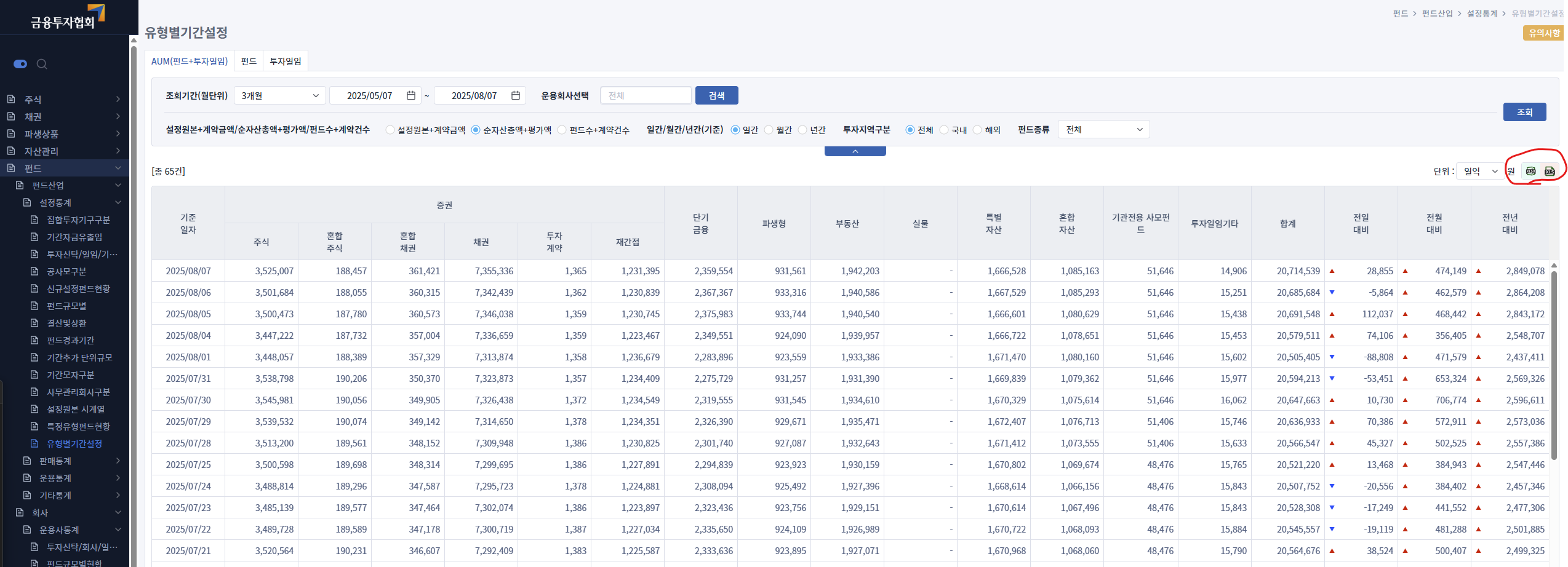 금융투자협회 종합통계 사이트에서